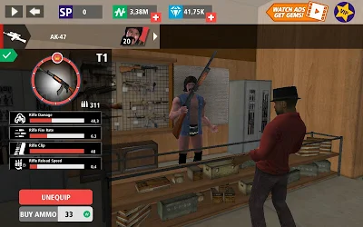Você pode personalizar seu personagem para torná-lo elegante. Experimente diferentes combinações de roupas todos os dias. Compre munição especial e aumente a proteção do seu gângster. Uma grande loja de roupas está disponível para seu herói. Você também pode comprar itens de uso constante: cartuchos, armadura e kit de primeiros socorros.
